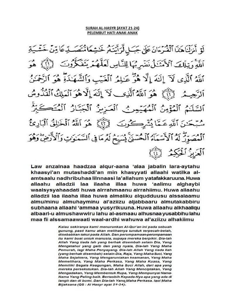 Lihatlah Surah Al Hasyr Ayat 21 Hingga 24 Dalam Rumi Read Islamic Surah Ayah