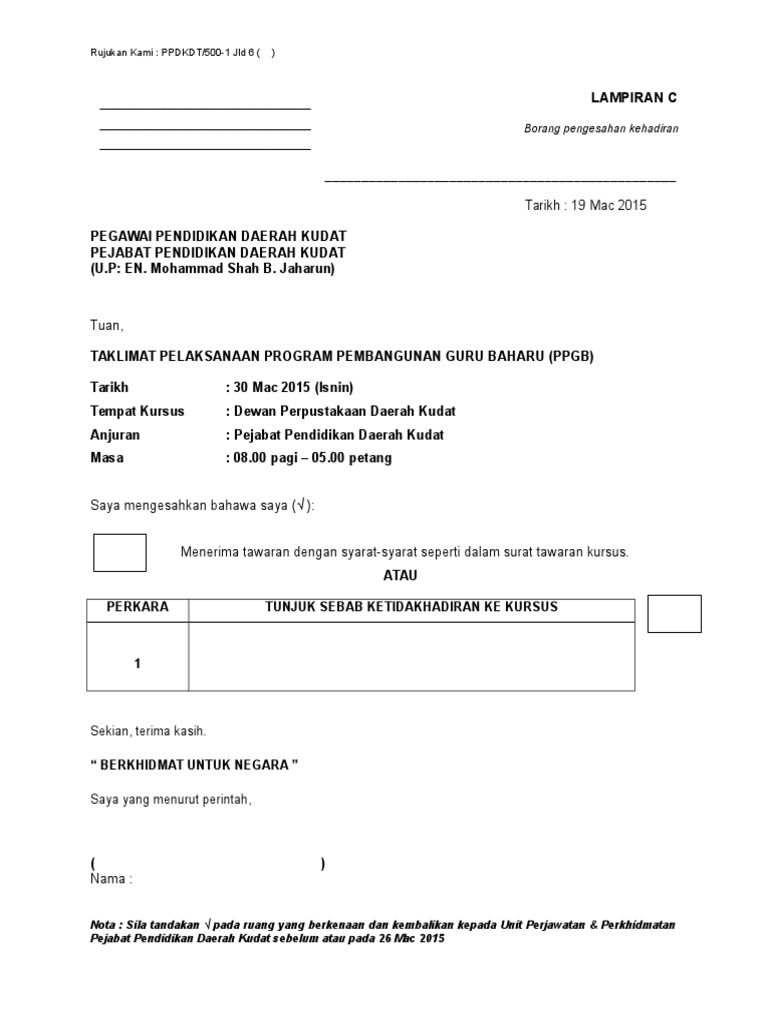 Surat Maklum Balas Kehadiran Pdf